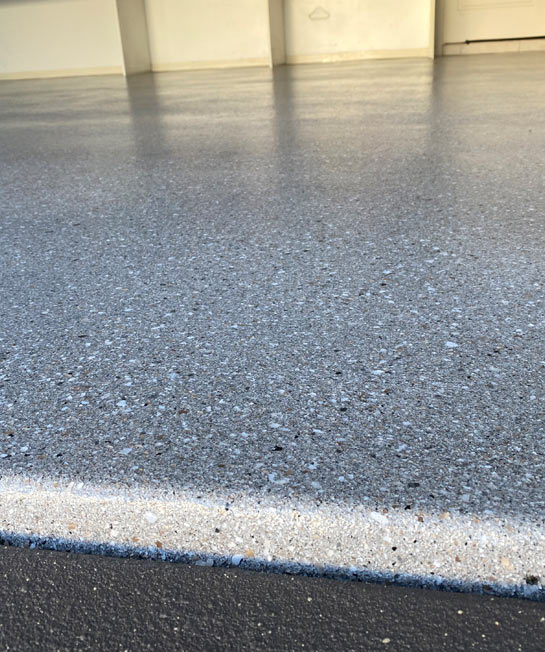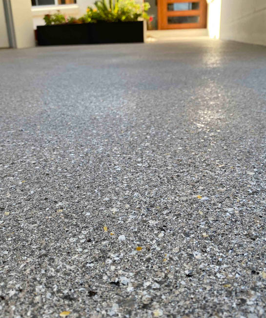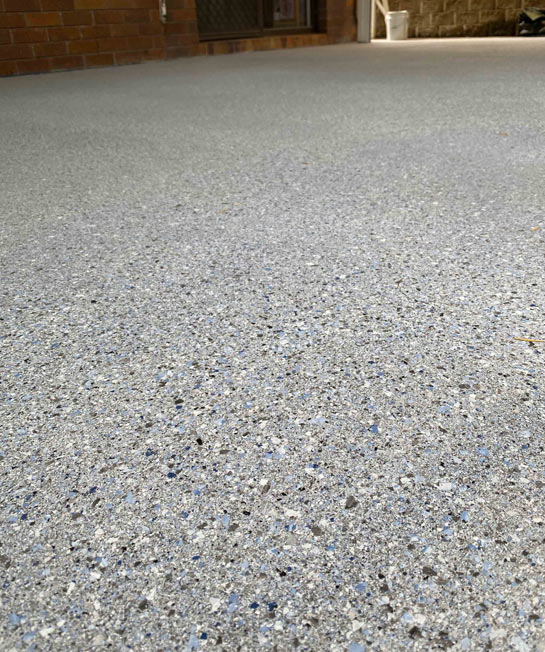 Epoxy flake is a cutting edge innovation in flooring technology. It utilises an advanced multi-layered coating technique of dry flakes or chips of paint, metal, and/or vinyl with a base coat to create a smooth, durable, and multi-coloured finish. As it is highly durable and customisable, it can create uniquely beautiful but long-lasting designs. It is ideal for garages, kitchens and undercover areas. It expands at a different rate to concrete which is why it is ideal for indoor applications.